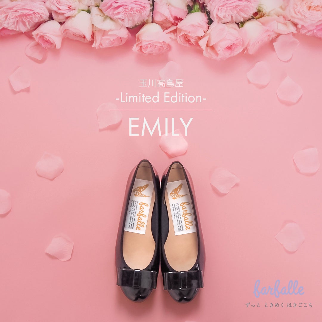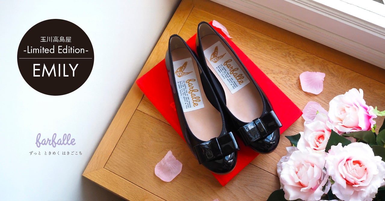 そんな熱い想いから生まれた、ファルファーレの新作シューズ《エミリー》が、玉川高島屋店にて期間限定のPOP UP SHOPで販売されます。