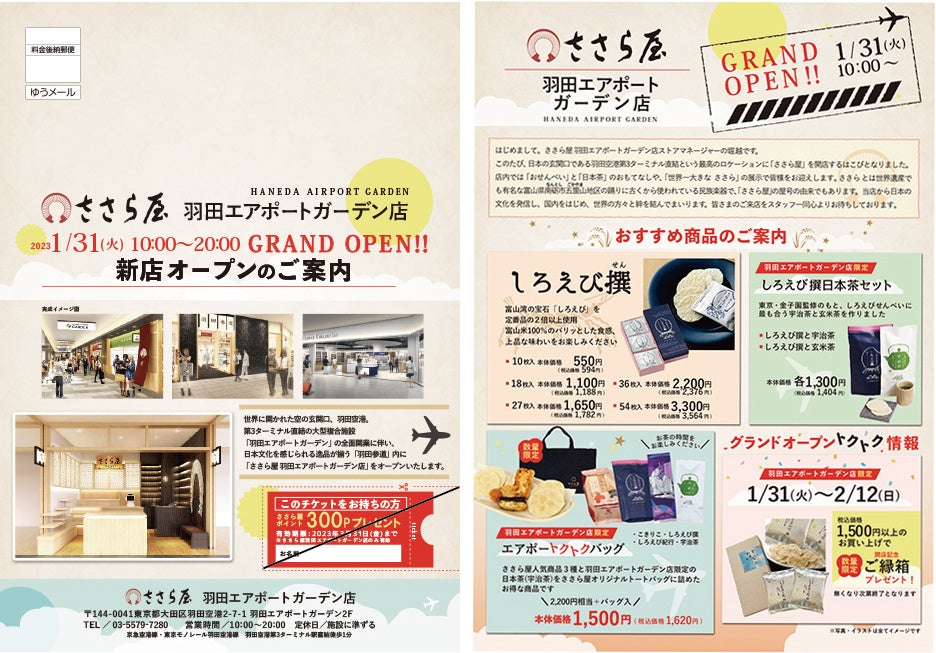 羽田エアポートガーデンにしろえびせんべいでお馴染みの老舗米菓専門店「ささら屋」が1月31日(火)グランドオープン!