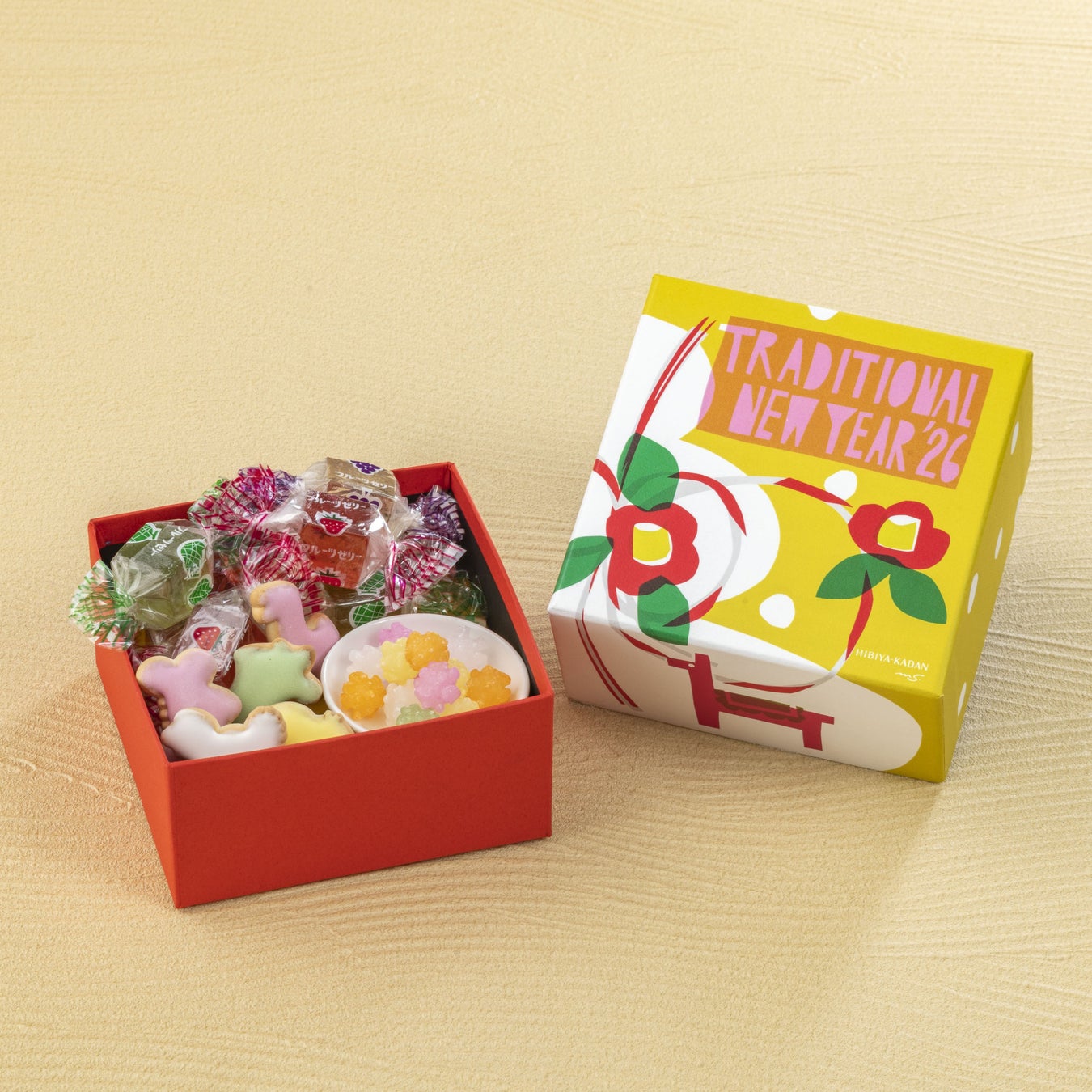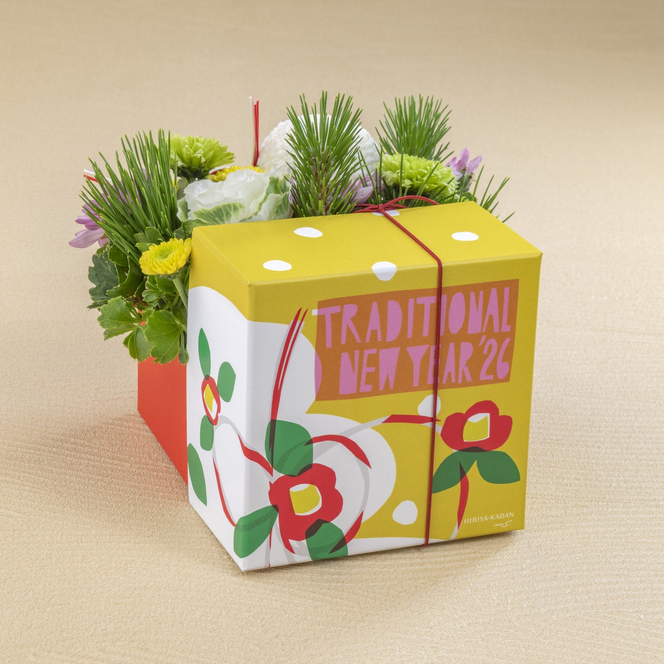 鈴木マサル氏がデザインしたオリジナルBOXに、日本の正月を感じさせる和花をあしらいました。お花を楽しんだ後は小物入れとしても使用できます。伝統的かつ独創的なデザインが、新たな一年への期待とワクワク感を盛り立てます。