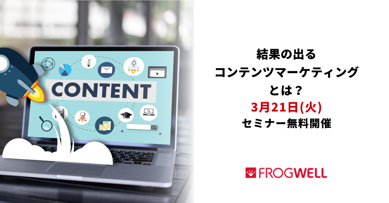 『結果の出るコンテンツマーケティングとは?~1年で0→60万人集めたメディア運営の基本と実践』オンラインセミナーをフロッグウェル(株)が3月21日(火)に無料開催