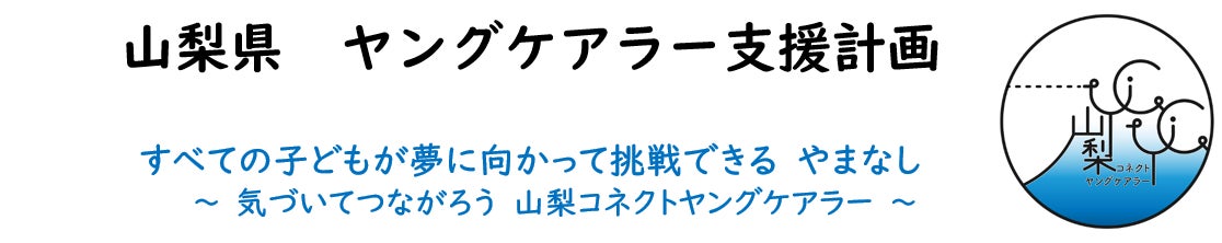 本計画では、ヤングケアラーが家庭の状況や育った環境に左右されることなく、すべての子どもが将来への希望や期待を抱き、その実現に向けて挑戦できる社会の実現に向けた想いを込め、「すべての子どもが夢に向かって挑戦できるやまなし ~気づいてつながろう 山梨コネクトヤングケアラー」を基本理念に定めております。