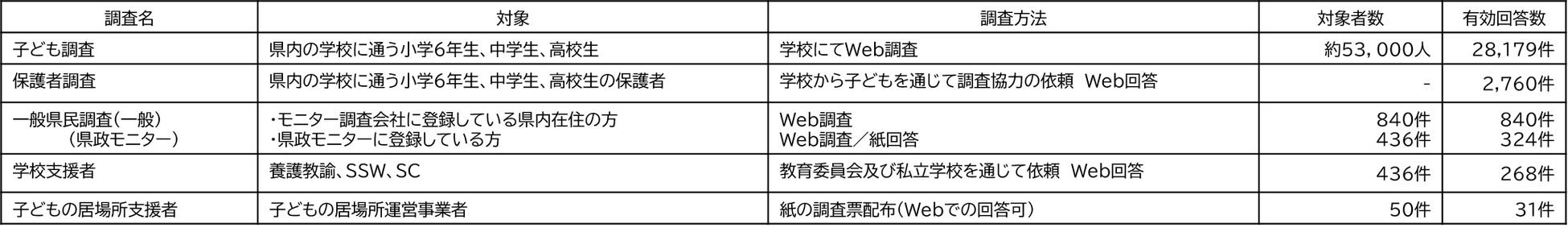 計画策定にあたり、昨年度に引き続きヤングケアラー実態調査を実施し、子どもに加え、未調査領域であった保護者、一般県民のヤングケアラーに対する意識や実態、養護教諭、スクールソーシャルワーカー等の学校支援者の支援状況を把握し、ヤングケアラーの認知度やヤングケアラーの本県独自の捉え方などを新たに示しております。