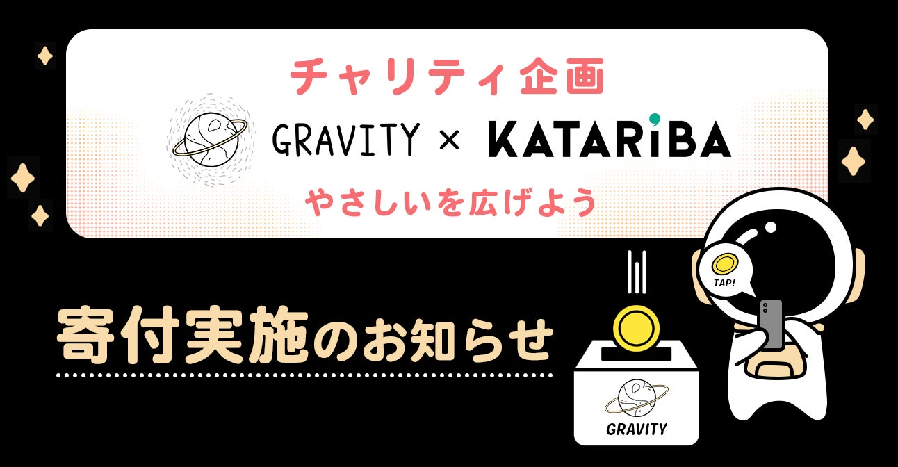 グラビティは、今後もやさしい世界の体現のため、継続的に様々な寄付を求める団体様に向けた社会貢献活動を展開していきます。これからも人々が協力し合い、支え合うやさしい社会を作り続けるため、ユーザーと共に歩み続けます。是非ご一緒いただける企業様、団体様いらっしゃいましたら下記までご連絡くださいませ。