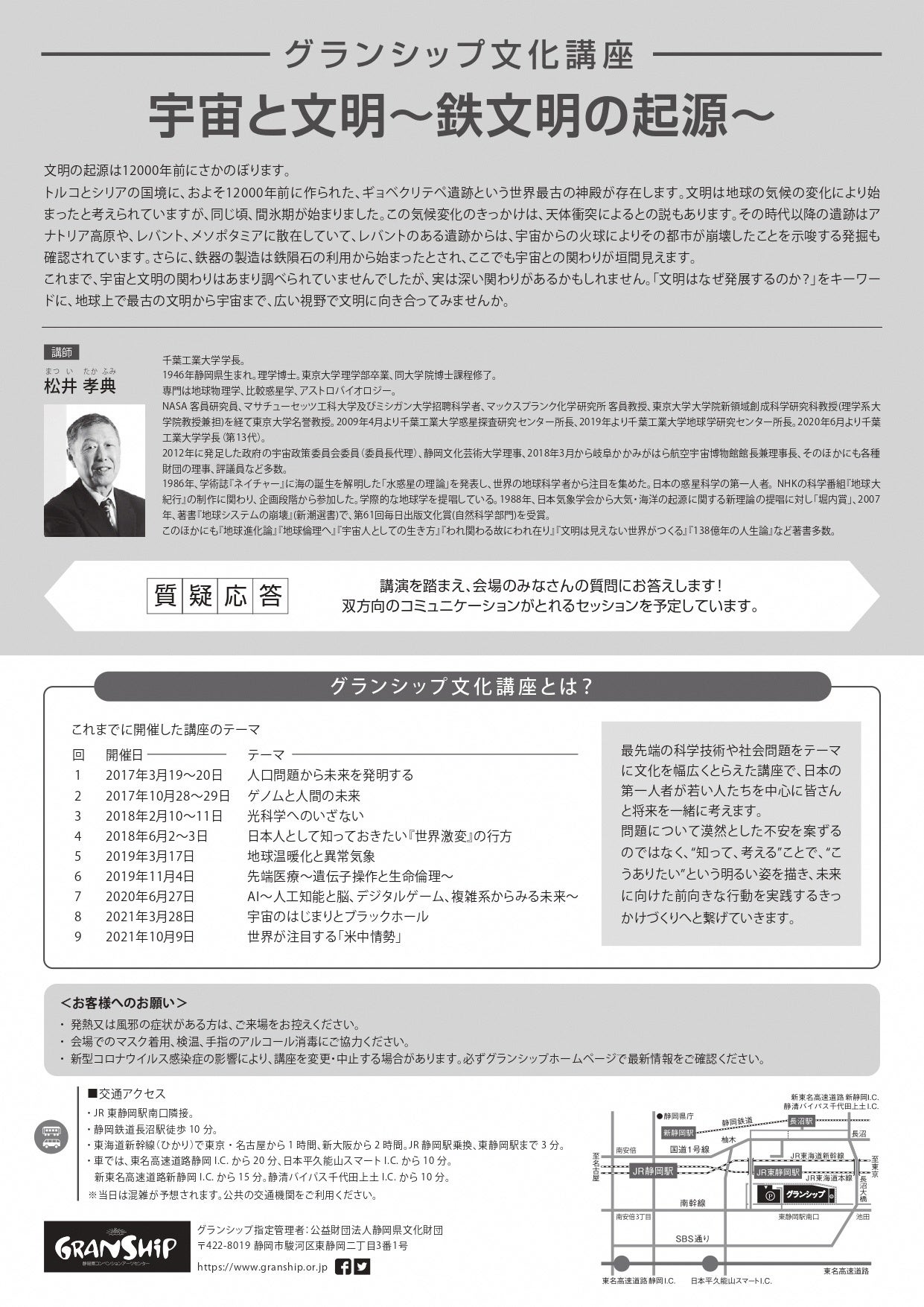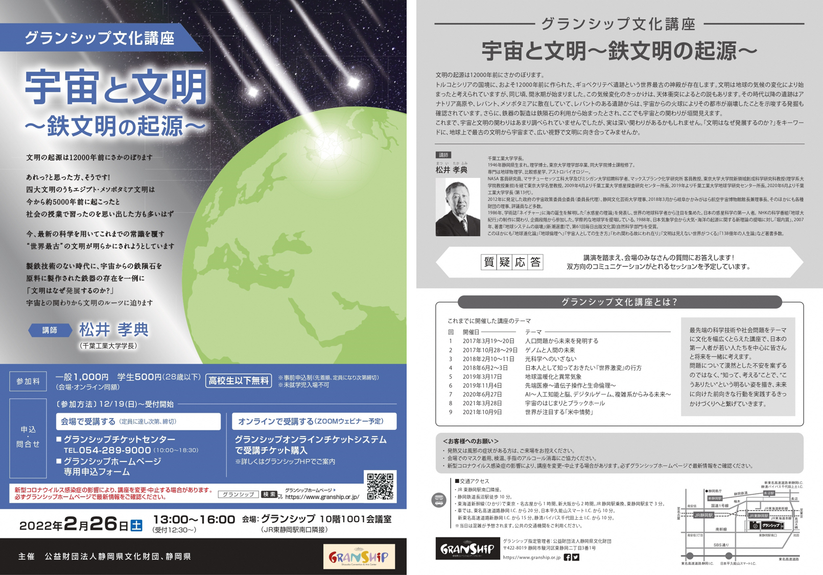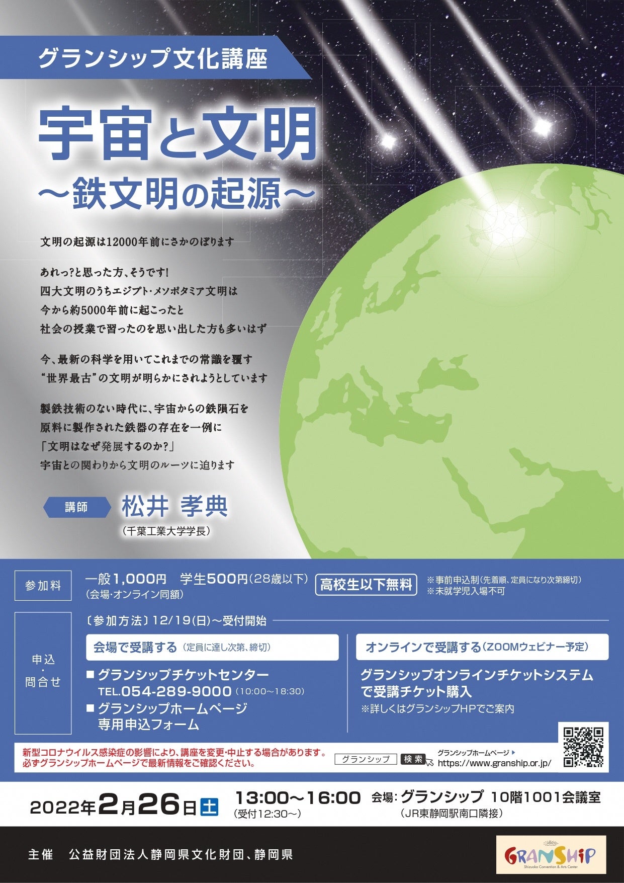 グランシップ文化講座「宇宙と文明~鉄文明の起源~」を会場・オンライン開催