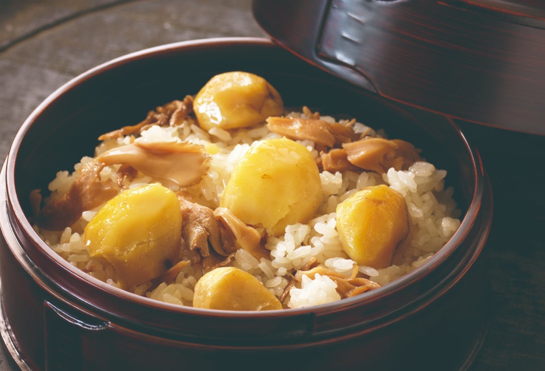 ほっくりと甘い熊本県産の和栗を使用。味つけには、椎茸や鰹節、焼きあごのだしの素材と淡口醤油を合わせ、奥深い味わいに仕上げています。
