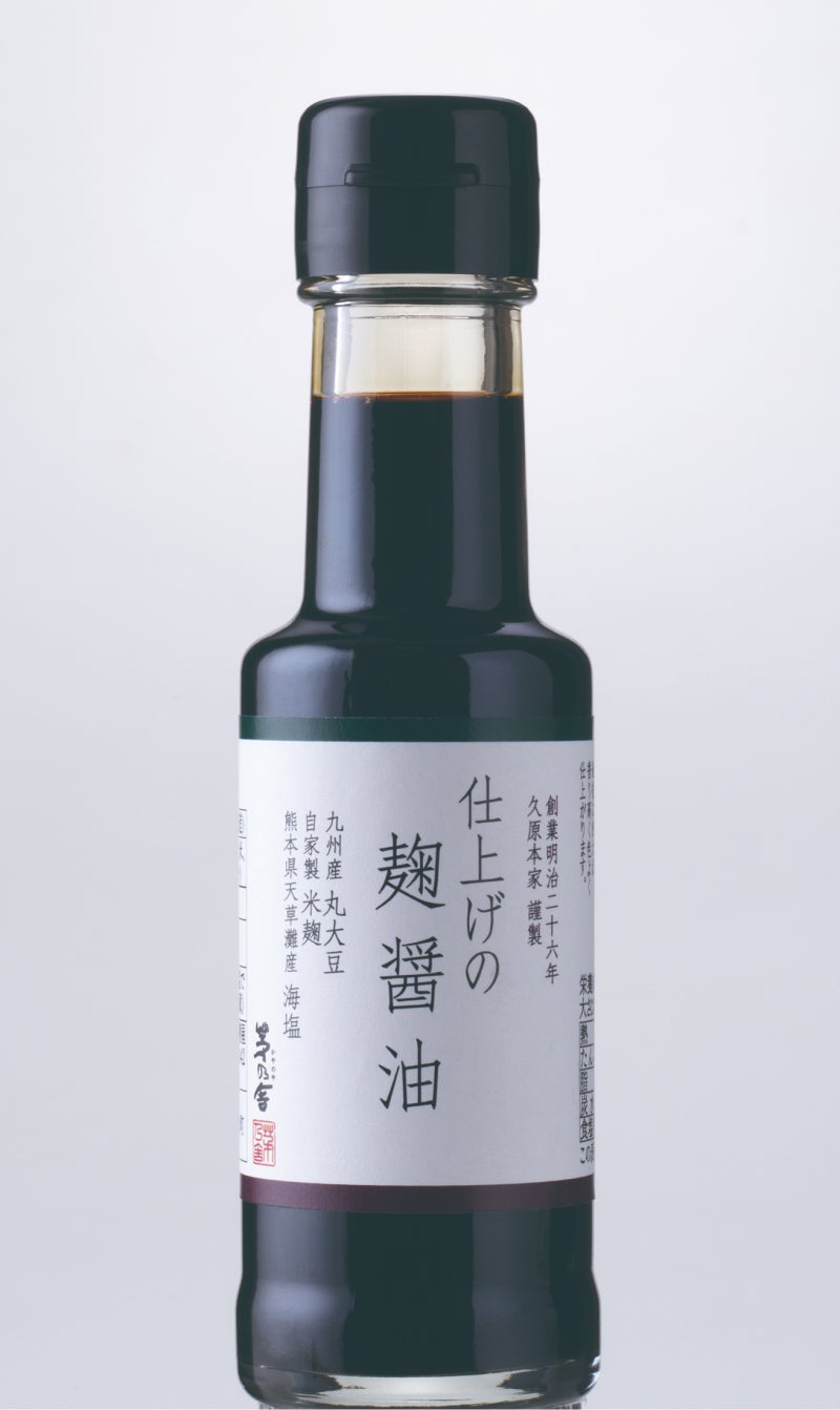九州産丸大豆、天草灘産の塩、自家製米麹だけでおつくりした小麦粉不使用のお醤油です。小さな醤油蔵からはじまった茅乃舎が、長年大切にしてきた麹の技術が生かされています。