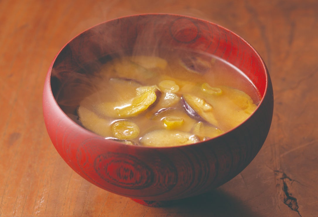 国産の茄子に、九条葱の風味を添えて、満足感のある一杯に。茄子からじわっとあふれるだしと味噌の風味をお楽しみいただけます。