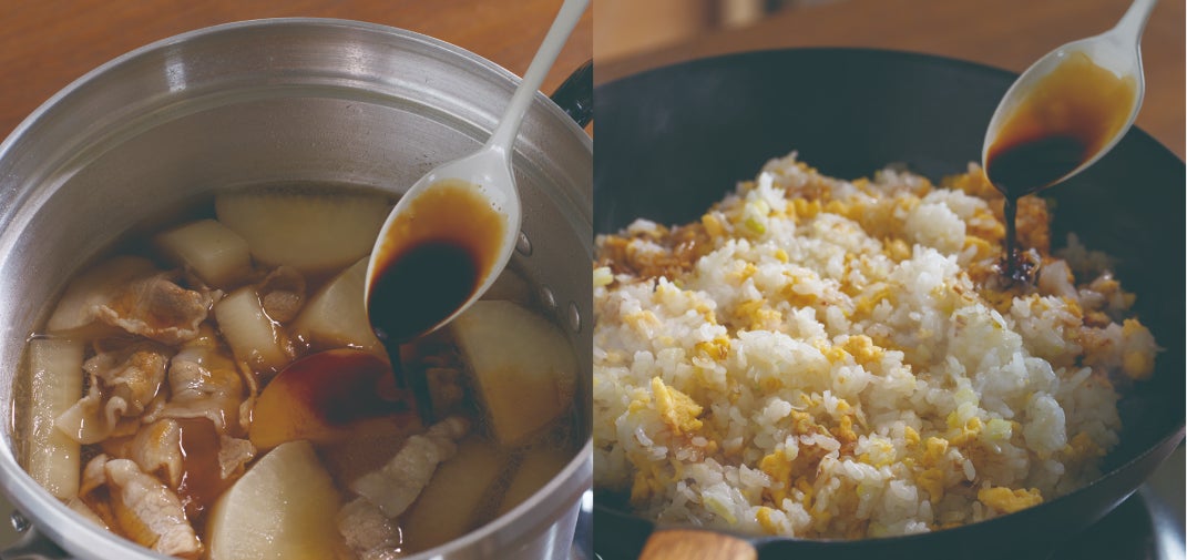 料理の最後に少し加えるだけで、醤油の豊かな香りがふわりと広がり、色つやもより美しく仕上がります。煮物に加えれば照りが増し、チャーハンなど炒め物の最後に回しかければ醤油の香ばしい風味が引き立ちます。味わいも見た目も、いつもの料理を格上げしてくれます。