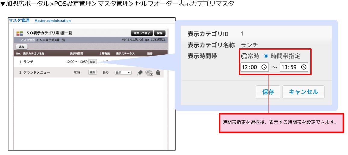新機能4:セルフオーダー表示カテゴリ時間帯別切替