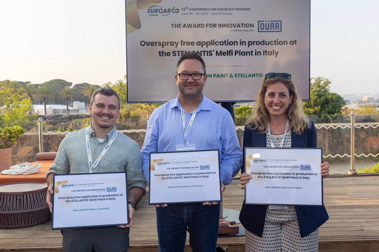 ABB、ステランティス、日本ペイントの3社は、カンヌで開催された自動車の車体仕上げに関する国際会議SURCAR Europeで協業を発表しました。この国際会議は1964年から隔年で開催されており、今回の会議においてはその革新的な取り組みが評価され、3社でイノベーションアワードを受賞しました。