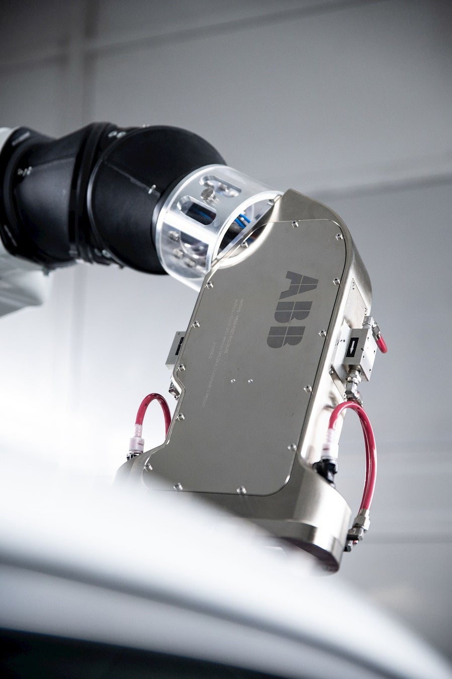 PixelPaint は、IRB 5500 シリーズなどの ABB の塗装ロボットに搭載された、1,000個以上の小さなノズルを個別に制御する塗装ヘッドで構成されています。ABBの3Dビジョンシステムと組み合わせ、ABBのシミュレーション及びプログラミングソフトウェアであるRobotStudio®によって調整されたヘッドは、車体に非常に近い位置で正確に追従し、オーバースプレーや空気中のミストを発生させることなく塗料を100%、均一に車体へ塗布します。これにより塗料の無駄を省き、環境処理の負担を軽減するとともに、DSオートモビルのサステナビリティ目標への大きな貢献を果たします。