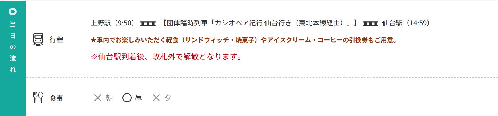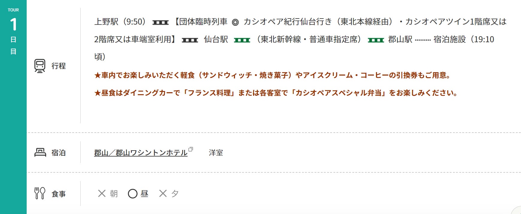 (1)商品名:【ネット限定】昼運行!「カシオペア紀行 仙台行き(東北本線経由)」体験乗車プラン