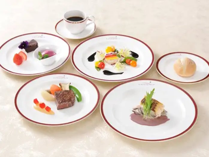 (4)昼食は各客室で「カシオペアスペシャル弁当」又はダイニングカーで「フランス料理」を
