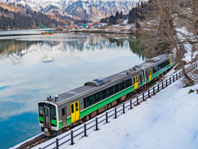 ※第一只見川橋梁ビューポイント、かねやまふれあい広場では、通過する列車をご覧いただけな