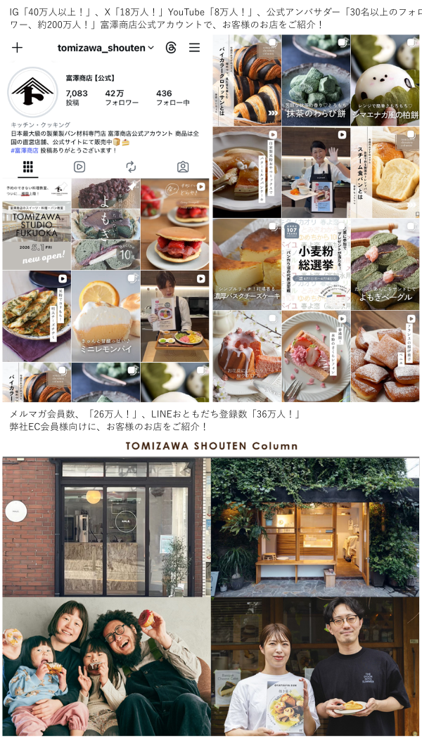 富澤商店のSNS、メルマガ、コラムを通じて、お客様店舗の認知拡大・来店促進を支援します。