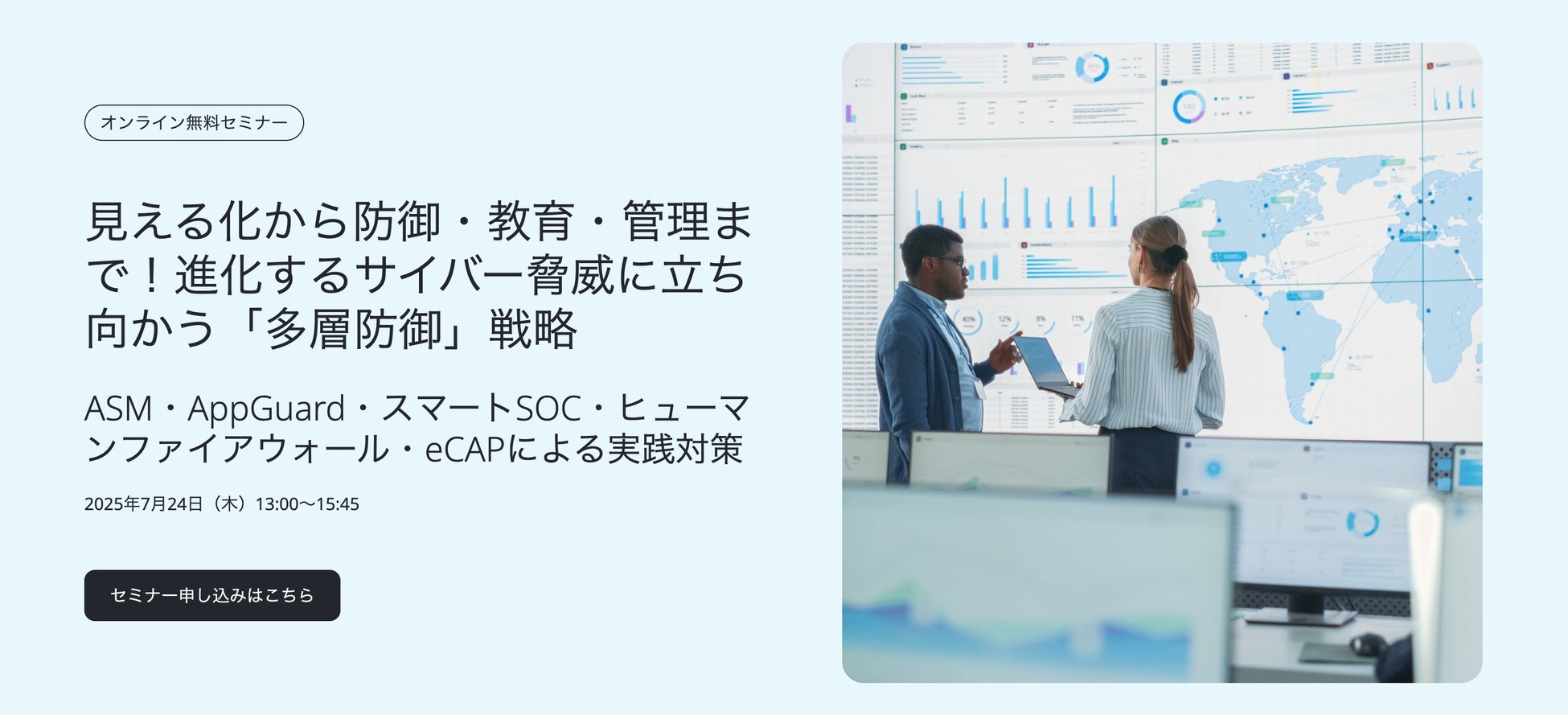 AIサイバーセキュリティプラットフォームを提供するAironWorks株式会社(本社:東京都港区、代表取締役:寺田 彼日、以下「AironWorks」)は、2025年7月24日にBSI Professional Services Japan株式会社他4社との共催セミナー『見える化から防御・教育・管理まで!進化するサイバー脅威に立ち向かう「多層防御」戦略』を実施することをお知らせいたします。