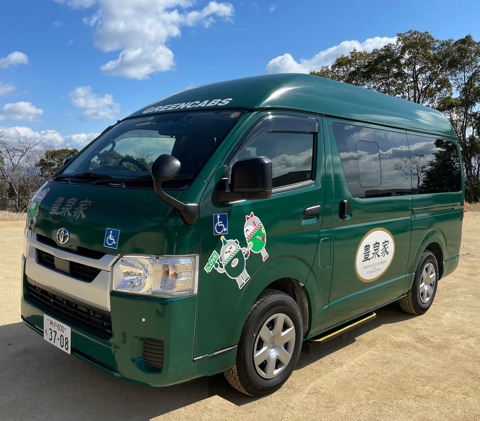 豊泉家のオリジナルブランドである“福祉車両”《GREEN CABS》。2022年4月、CCRC豊泉家 芦屋山手(特別養護老人ホーム・介護型ケアハウス)のOPENにあわせて運行開始!アイドルタイムを活用して独自の取り組みも開始します。
