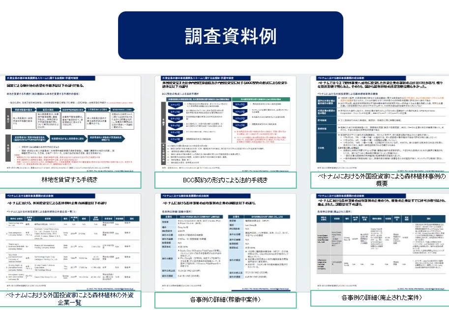 ベトナム政府の法規定、報告書、企業の資料・データを活用