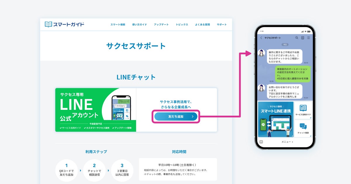 「サクセスサポート」はリアルタイムに専用LINEチャットサポート