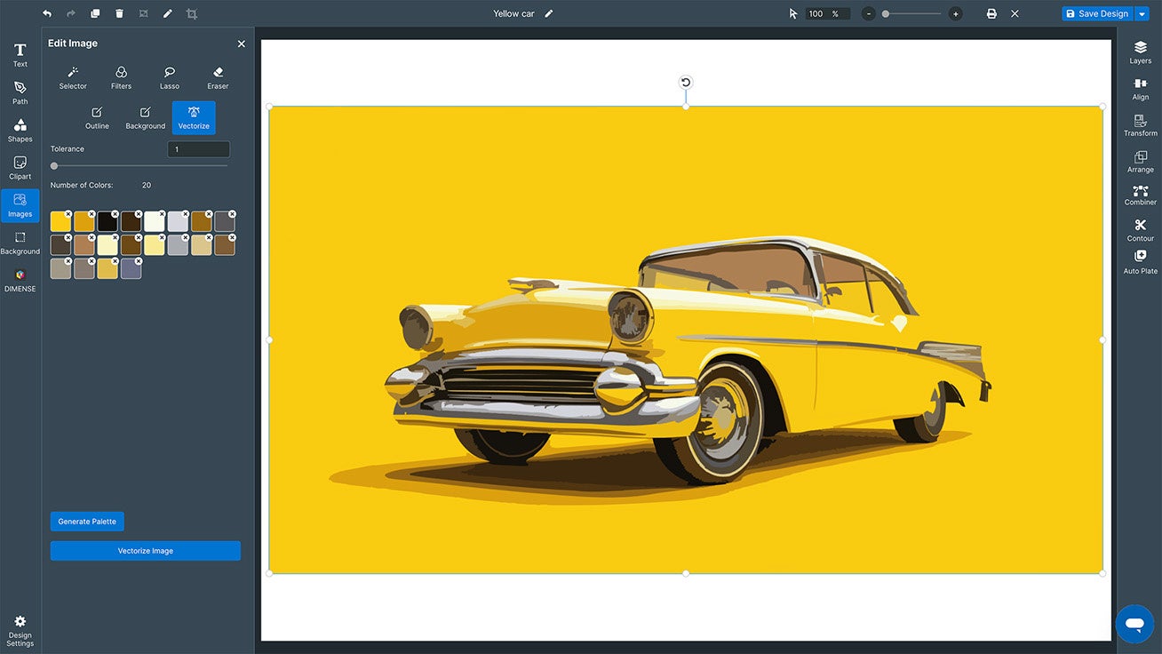 JPEGやPNGなどの写真や画像データをベクターデータ化する機能は、色ごとに画像を自動的に分割し、特定の色の画像をまとめて選択できるため、簡単かつ正確なデータ編集加工を実現します。