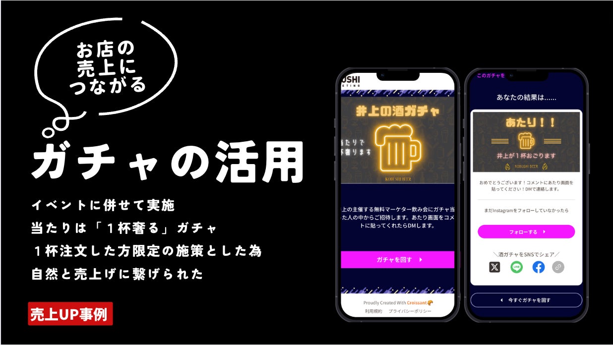 イベント集客でガチャを使うと、当たりの特典効果で本当にお客さんを集めやすいです。