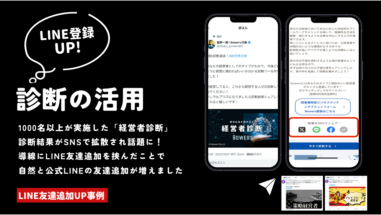 それから、診断の中にLINEの友だち追加を導線として組み込んだので、自社で運営している公式LINEの友達追加も効率的に行えました。
