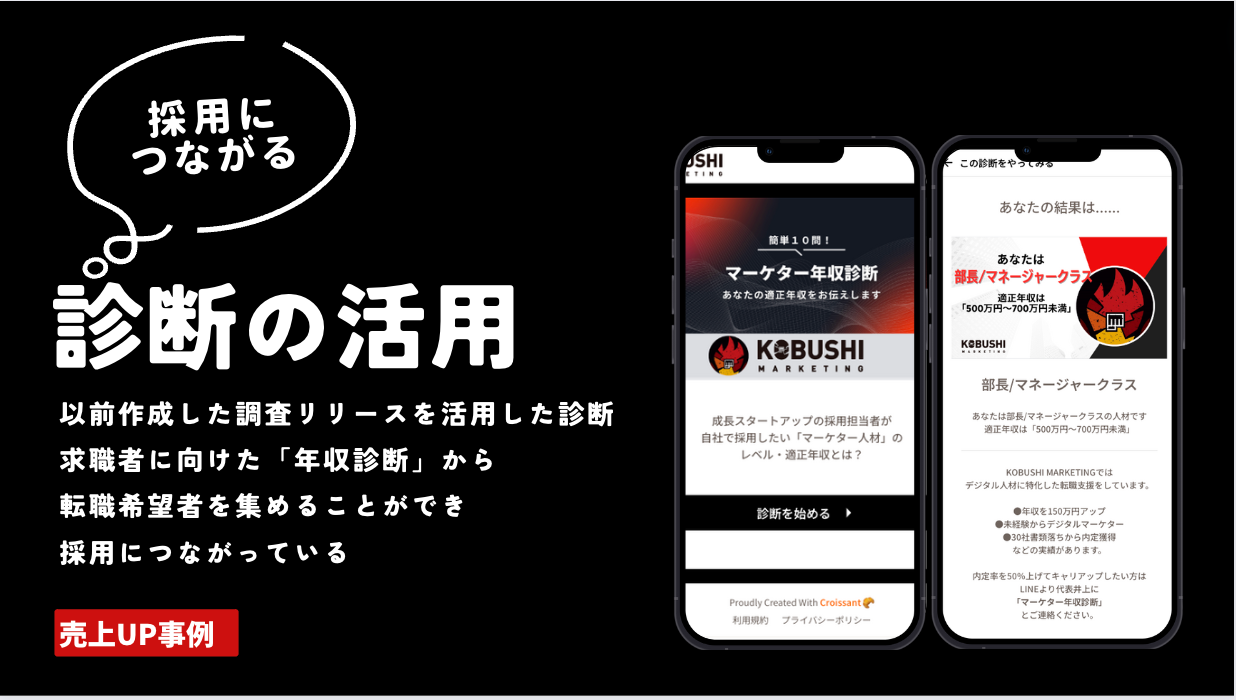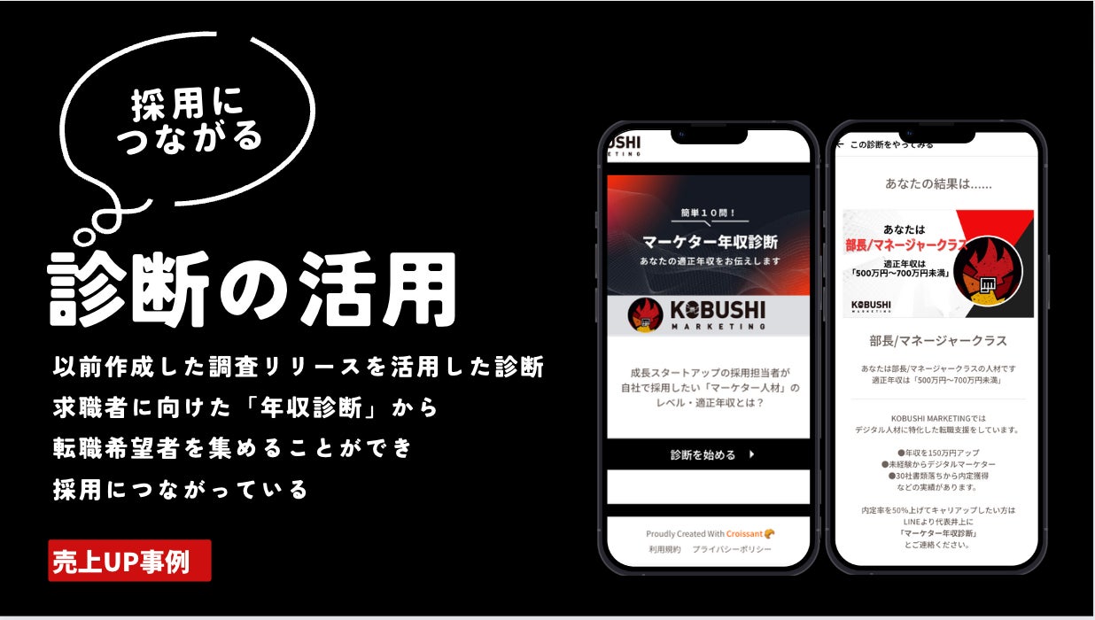 弊社では求職者をターゲットに「マーケター年収診断」という診断を作成してみました。