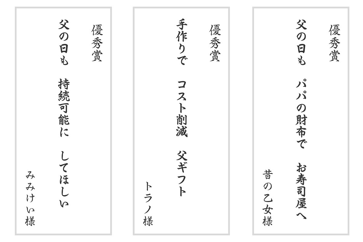以上、父の日.jp主催「父の日川柳コンテスト2024」の入選作品でした。