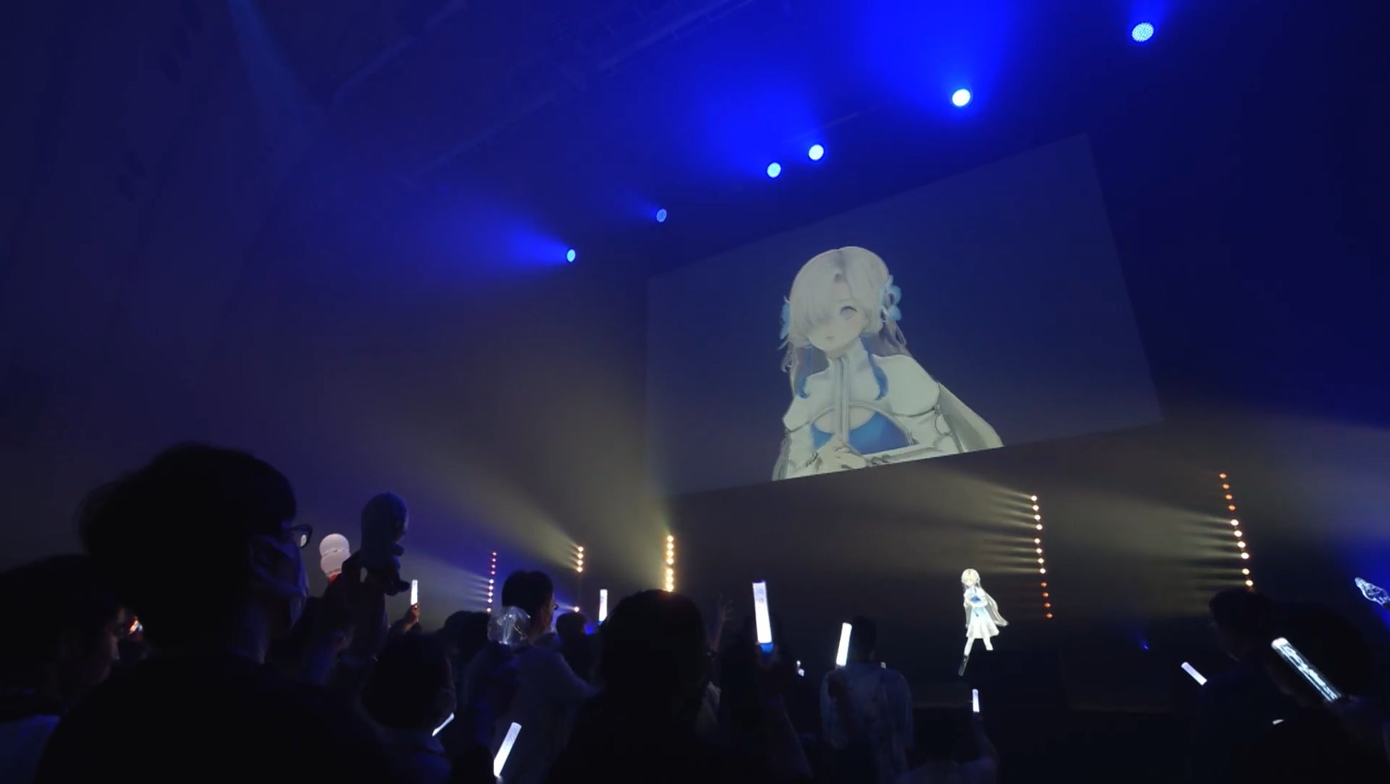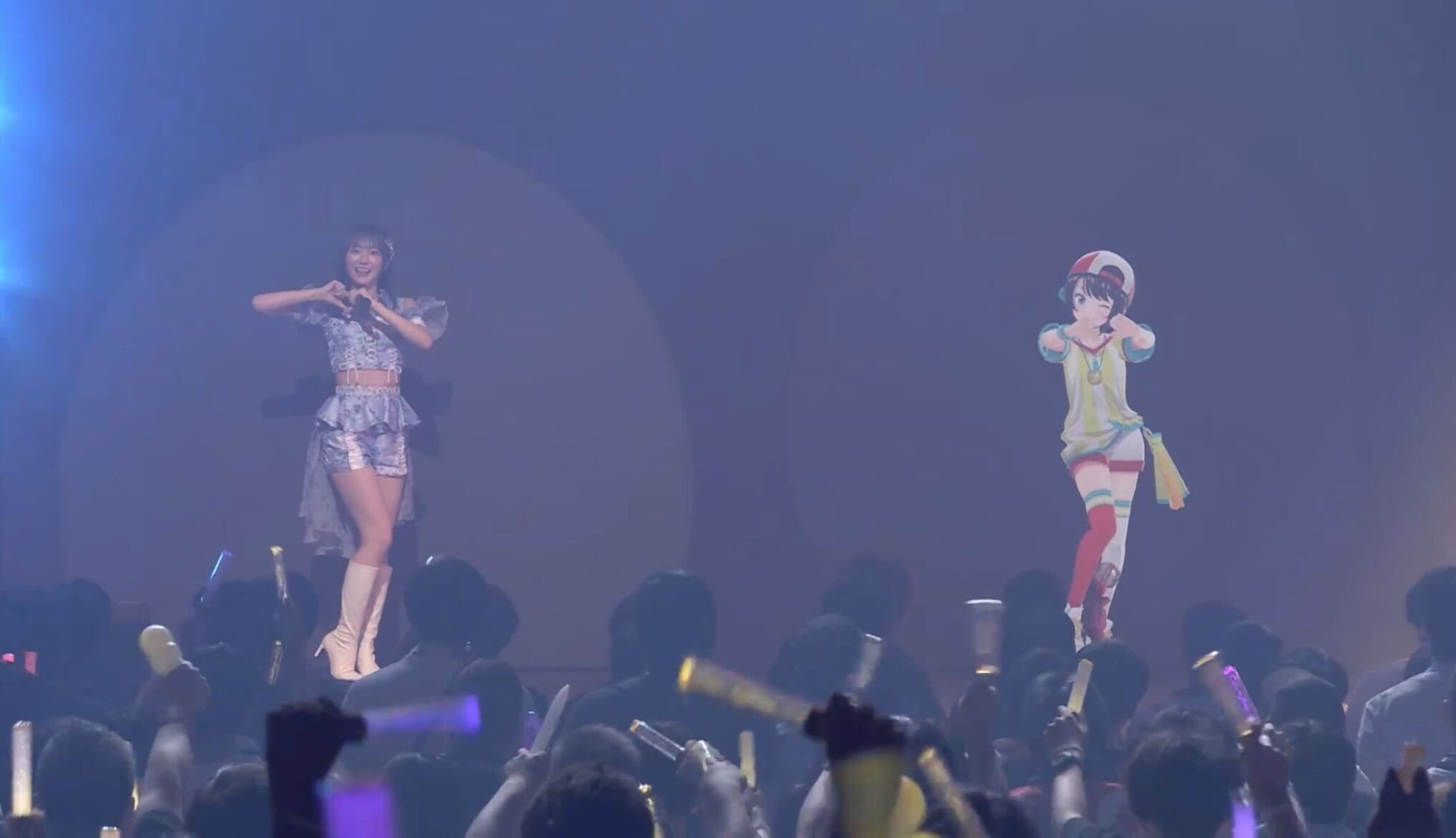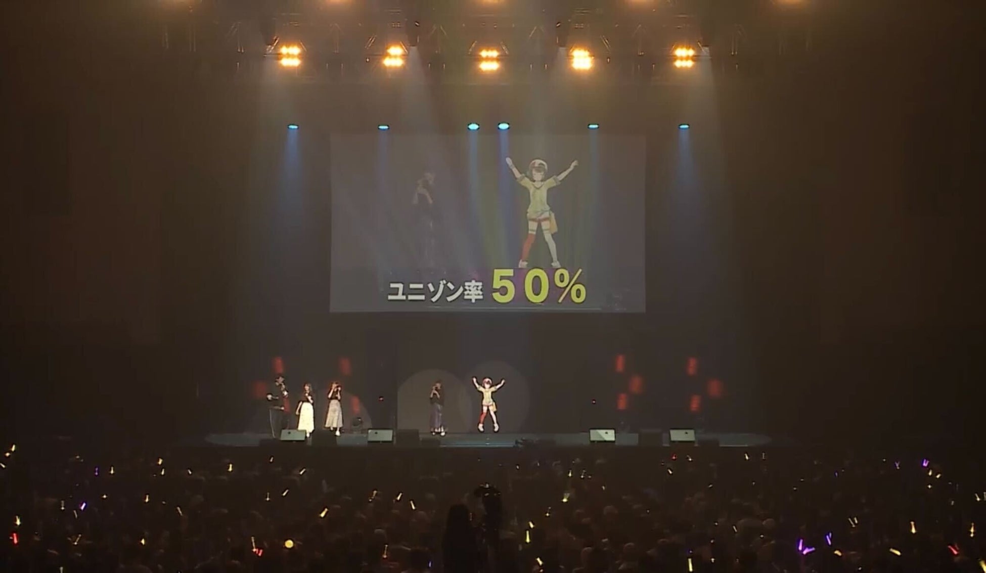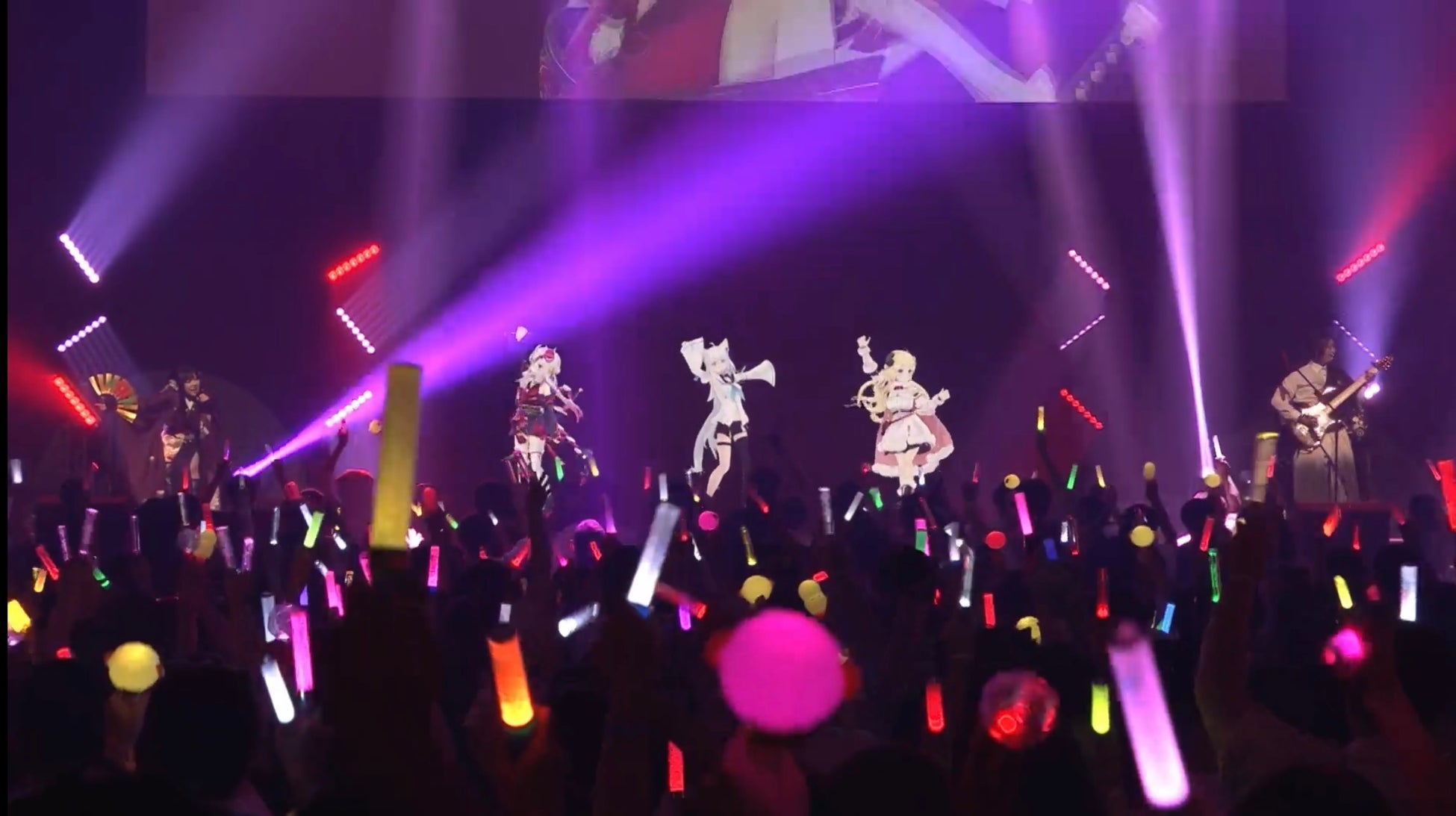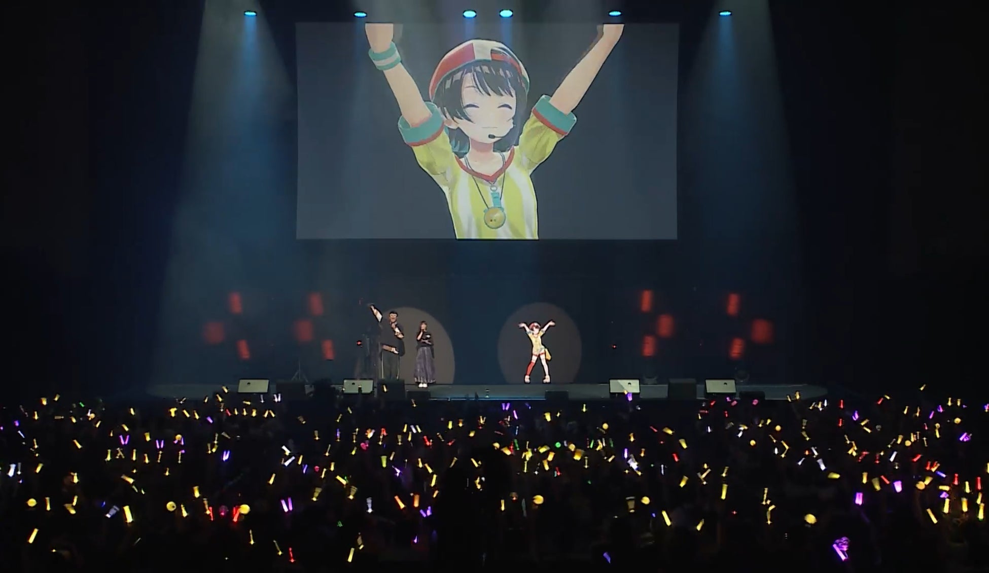 会場内の期待感が一層高まる中、大空スバル・野口衣織(=LOVE)・古坂大魔王ら本イベントのMC陣が登場。1年間番組を通じて仲を深めてきた3人のテンポ感のあるトークにより、会場の雰囲気は一気にヒートアップ。そしてスバルによるメインアーティストの紹介が始まると、会場にいるファンが立ち上がり、今か今かと登場を待ち構えていた。「リアル×バーチャル」が織りなす新しいライブの幕開けである。