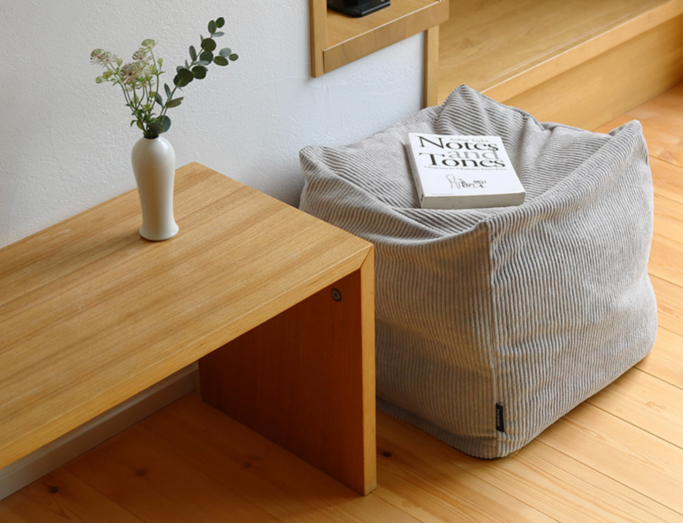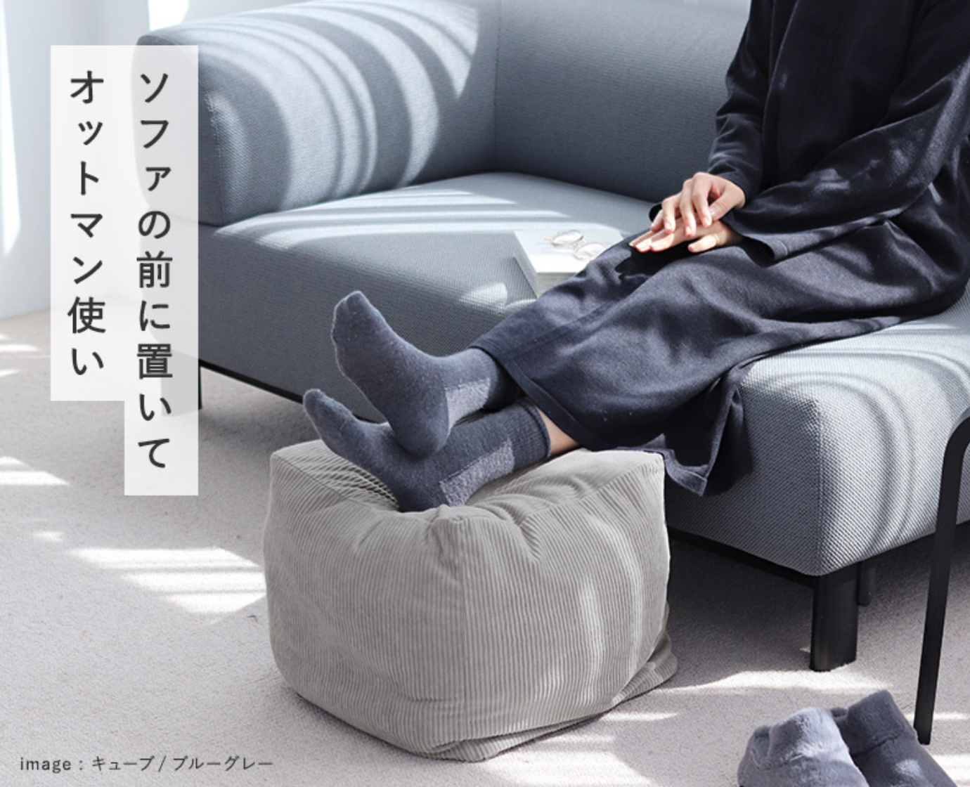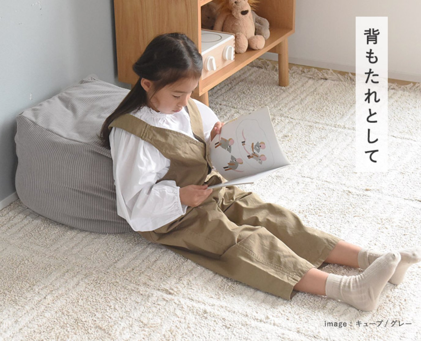 クッションとしてはもちろん、背もたれやオットマンとしてなど、マルチ使えるかたちです。