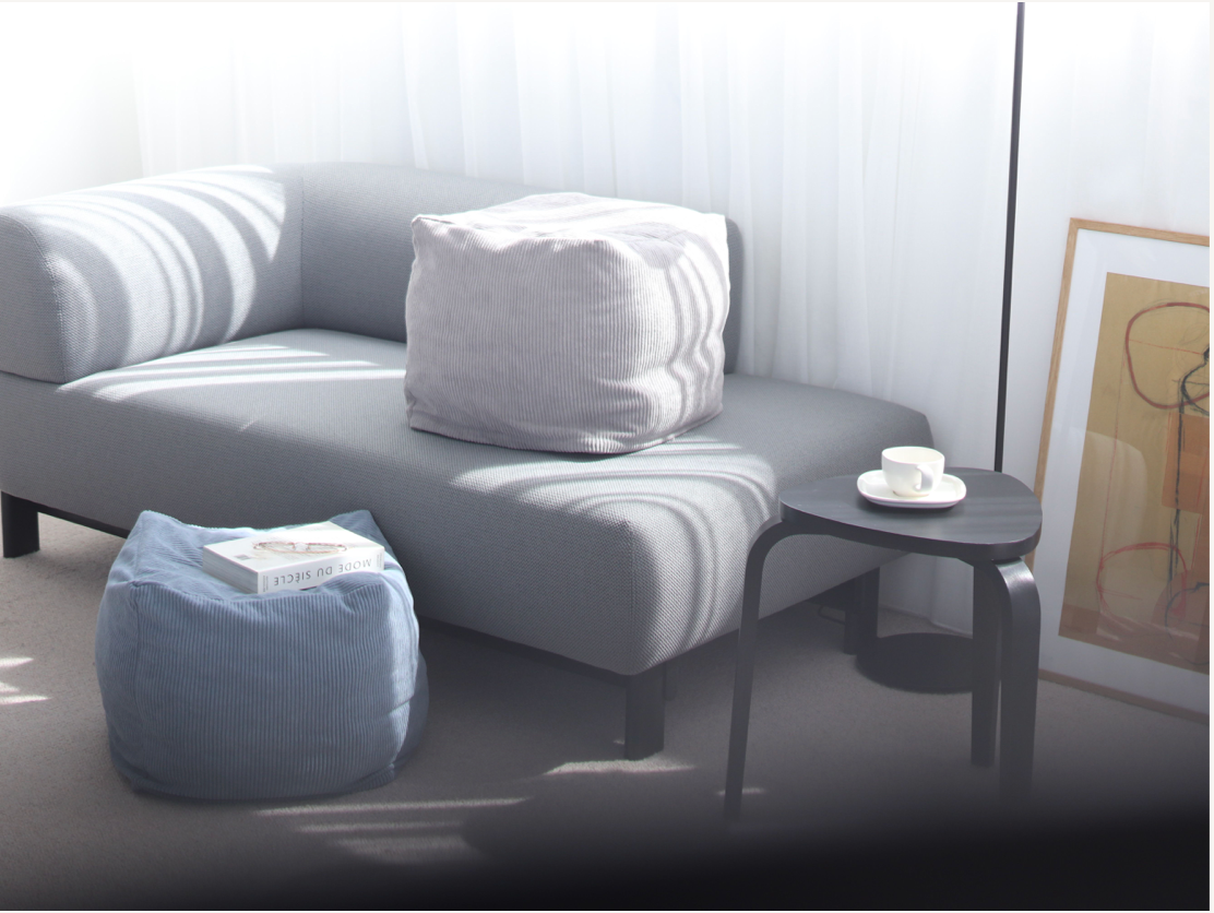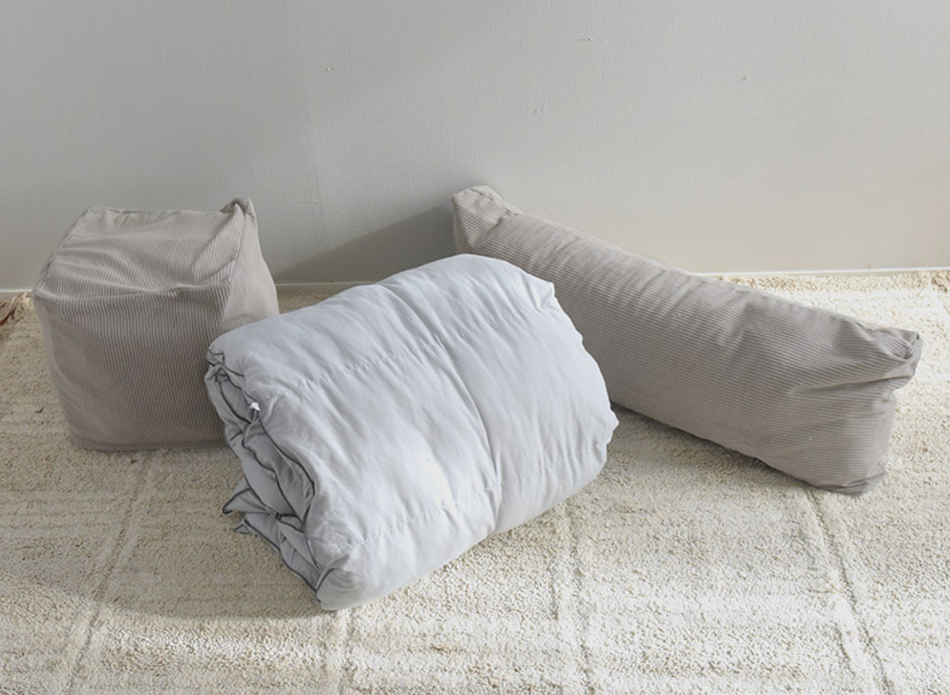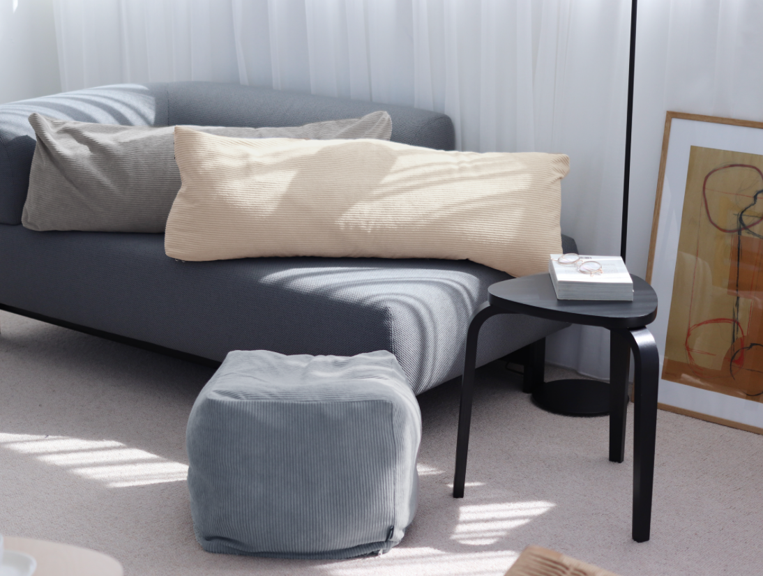 クッションとしてはもちろん、背もたれやオットマンとしてなど、マルチ使えるかたちです。