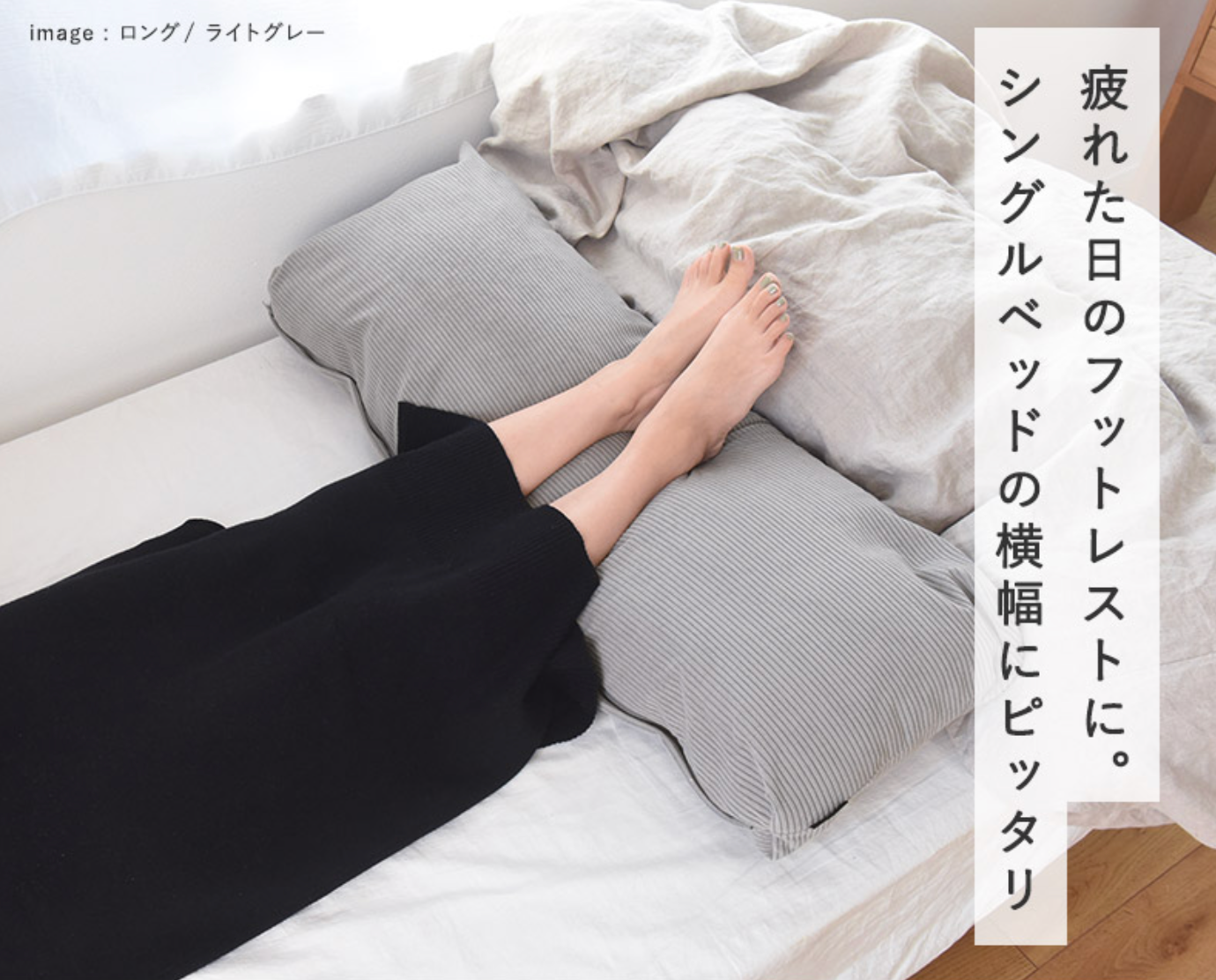 抱き枕としてはもちろん、フットレストとしても使いやすくなっています。