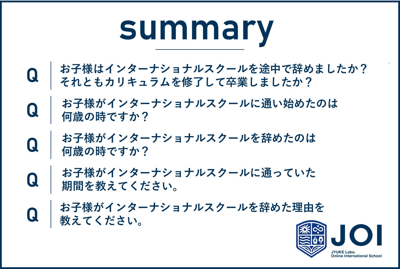 調査概要:インターナショナルスクールを辞めた理由に関する調査