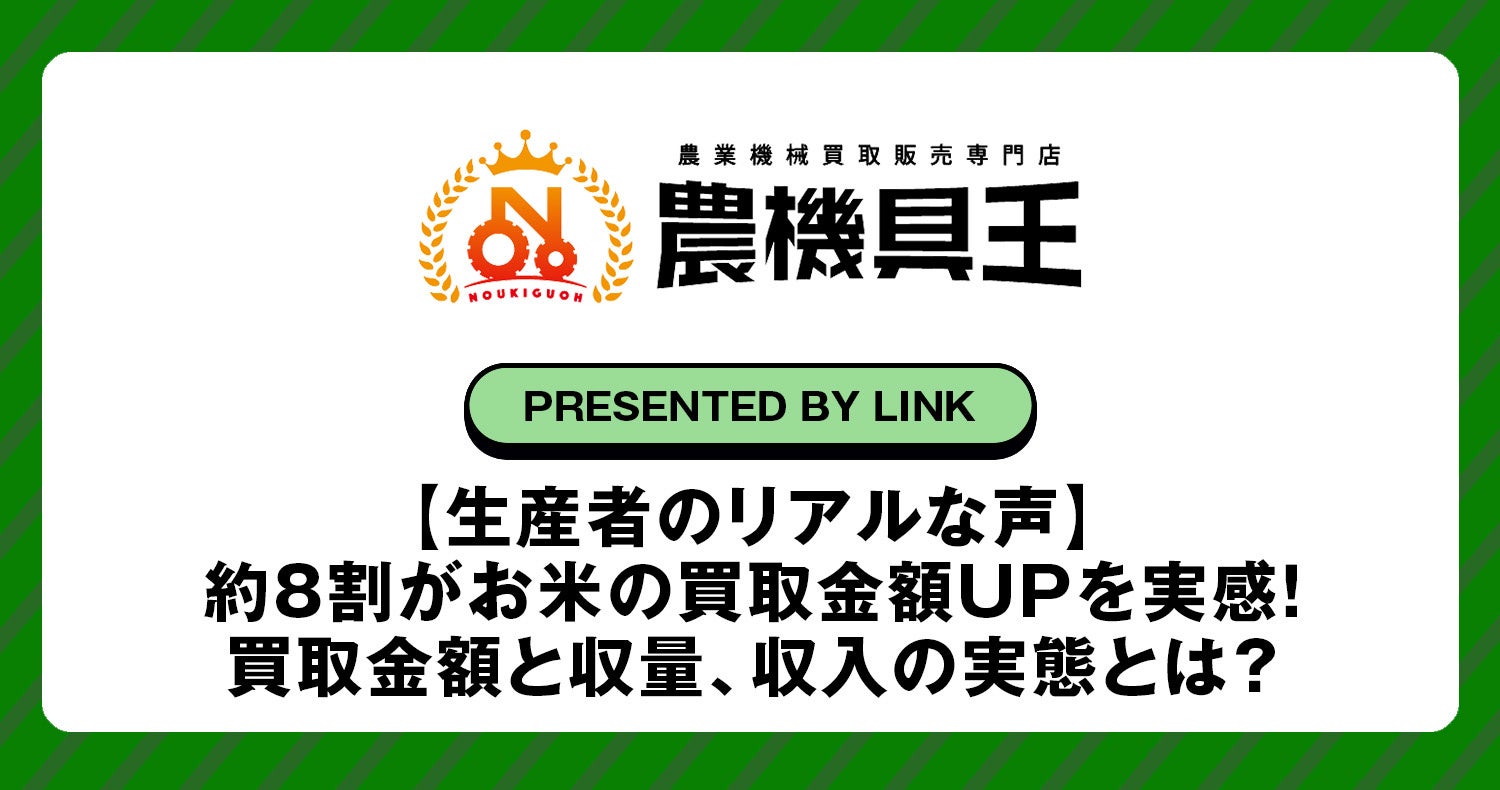 中古農機具の買取販売専門店「農機具王」を全国で33店舗展開している株式会社リンクは、日本の農作物の生産者様151名を対象に「今年のお米の収量」に関するアンケートを実施しました。