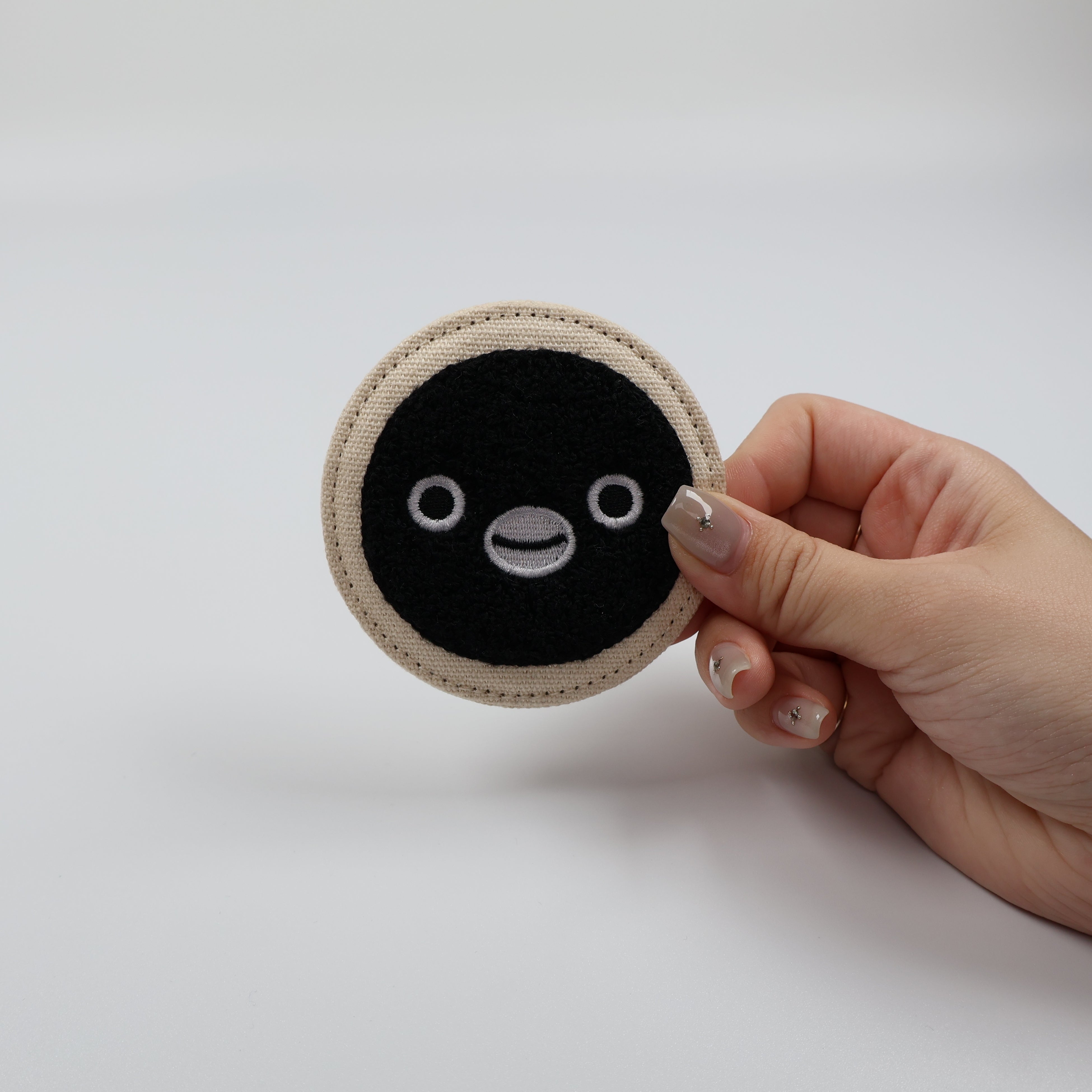 Suicaのペンギンのぽこぽことしたサガラ刺繍がかわいいミラーです。コンパクトなサイズで