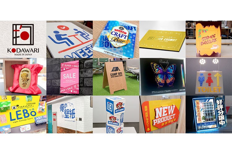 インターコスモス独自の印刷・加工・ラミネート技術を結集したオリジナル製品群「KODAWARIシリーズ」。立体感や特殊な質感、金属や木目など素材の風合いを活かしたサインやPOPなど、他にはないアイデアが詰まっています。