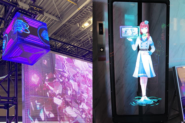 空中に映像が浮かぶ「ZANZO」、立方体の各面に映像を映せる「キューブビジョン」、高い透過率を誇る「シースルービジョン」など、映像による空間表現の新しい可能性を体感できます。