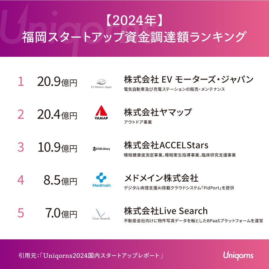 国内最大級のスタートアップメディア「Uniqorns(ユニコーンズ)」が2024年の福岡スタートアップ資金調達状況をランキング形式で発表