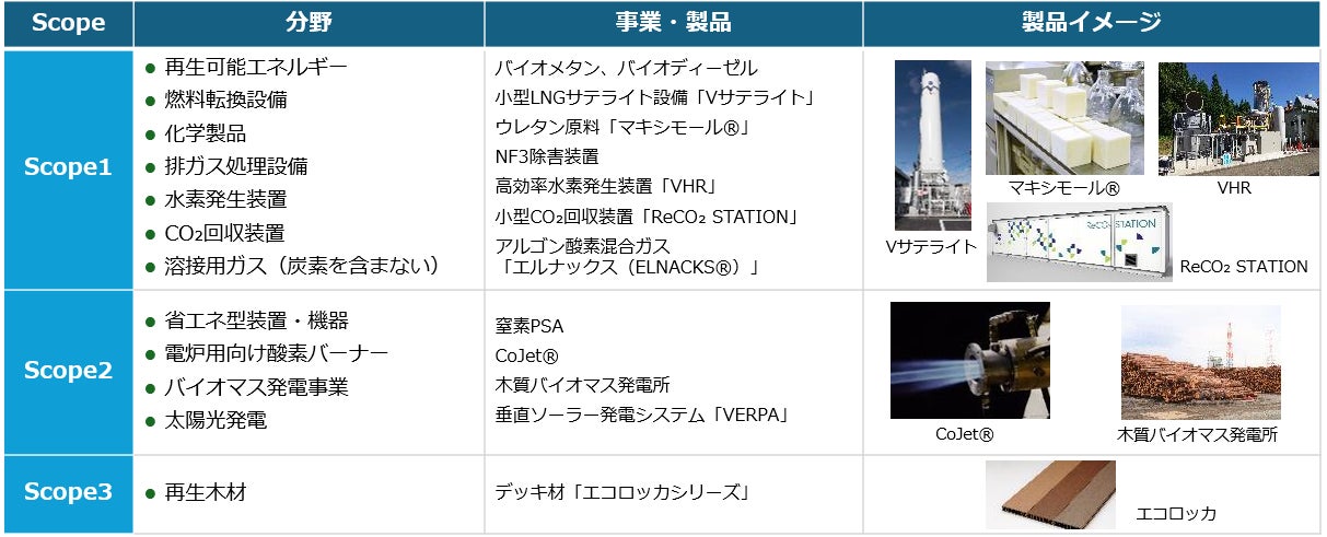 また、社会のGHG排出量削減に貢献する商材をリストアップし、技術開発を通じて製品ラインアップの拡充に努めています。今後は、再生可能エネルギーや省エネ設備などを含むこれらの製品を通じて、企業価値の向上と社会課題の解決につなげていく方針です。