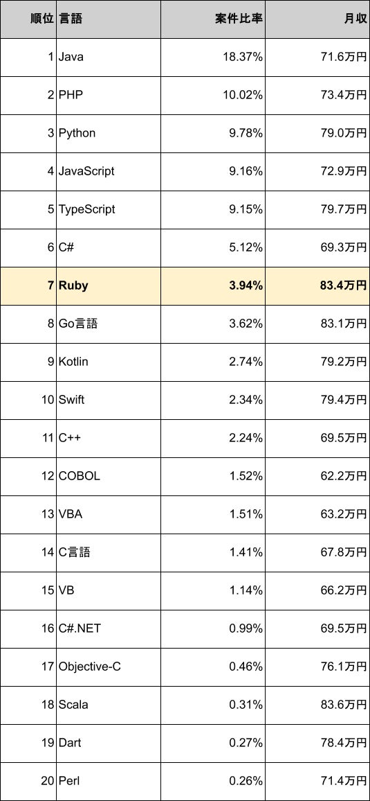 Rubyスキルの市場価値