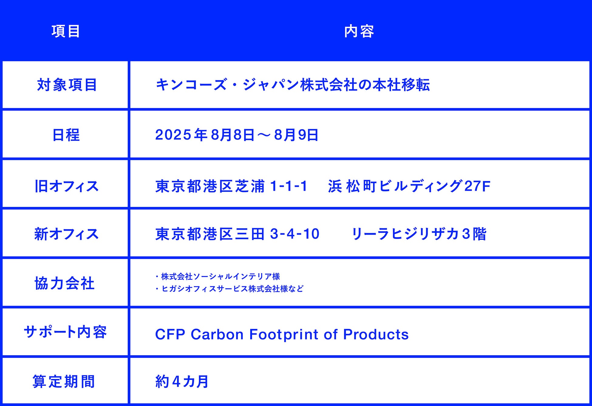 キンコーズ・ジャパン株式会社(本社:東京都港区、代表取締役社長:渡辺 浩基、以下 キンコーズ)は、本社オフィスの移転にあたり、「環境配慮型オフィス」への転換を図る機会と捉え、移転作業に伴うCO₂排出量を、業界に先駆けて詳細に計測するという独自の挑戦に取り組みました。
