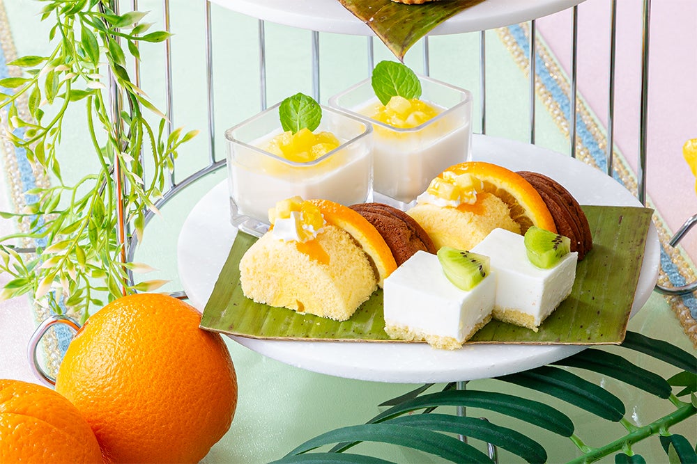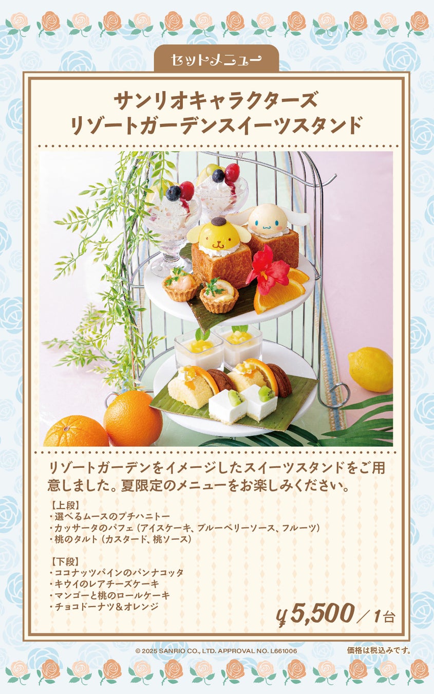 夏季限定の「サンリオキャラクターズ リゾートガーデンスイーツスタンド」はリゾートガーデンをイメージしたトロピカルなスイーツスタンドです。