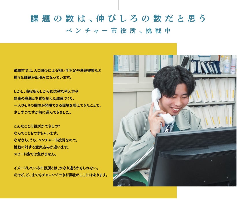 スピード感・攻めの姿勢・誠実でベンチャーな飛騨市役所をこの機会に体験してみませんか?