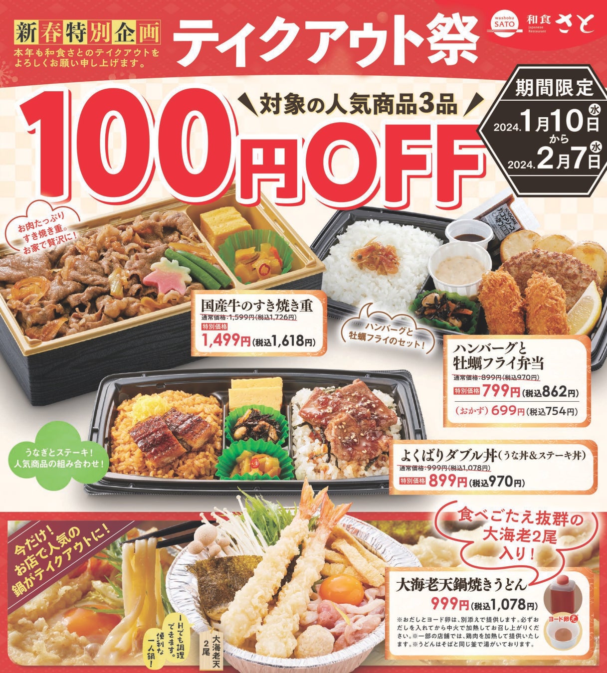 【和食さと】新春特別企画「テイクアウト祭」スタート!!人気の商品が100円引!!