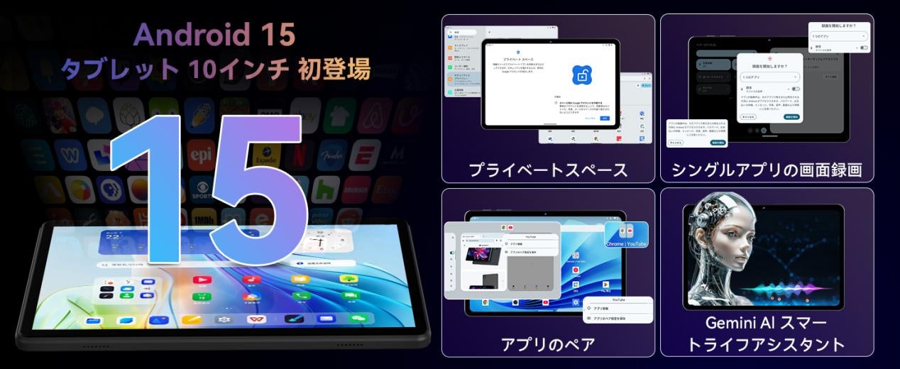 タブレット 10インチWi-Fiモデル、In-Cell 1920x1200 FHD IPSディスプレイ