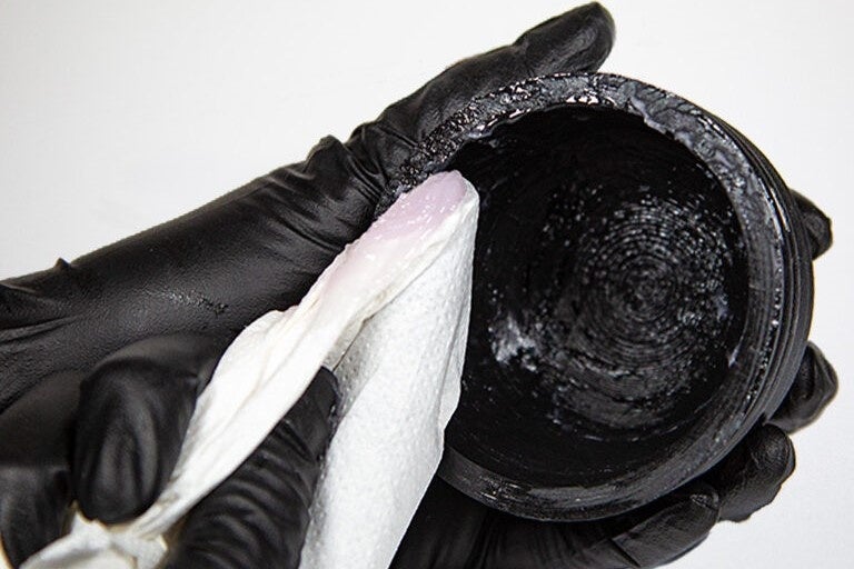 SUP-002は安全性にも優れ、肌に触れても無害で、取り外した後のサポート材は一般廃棄物として処理可能です。また、取り外し時にポリウレタンの仕上がり面を傷つけることがなく、樹脂のポリマー化反応にも影響を与えません。