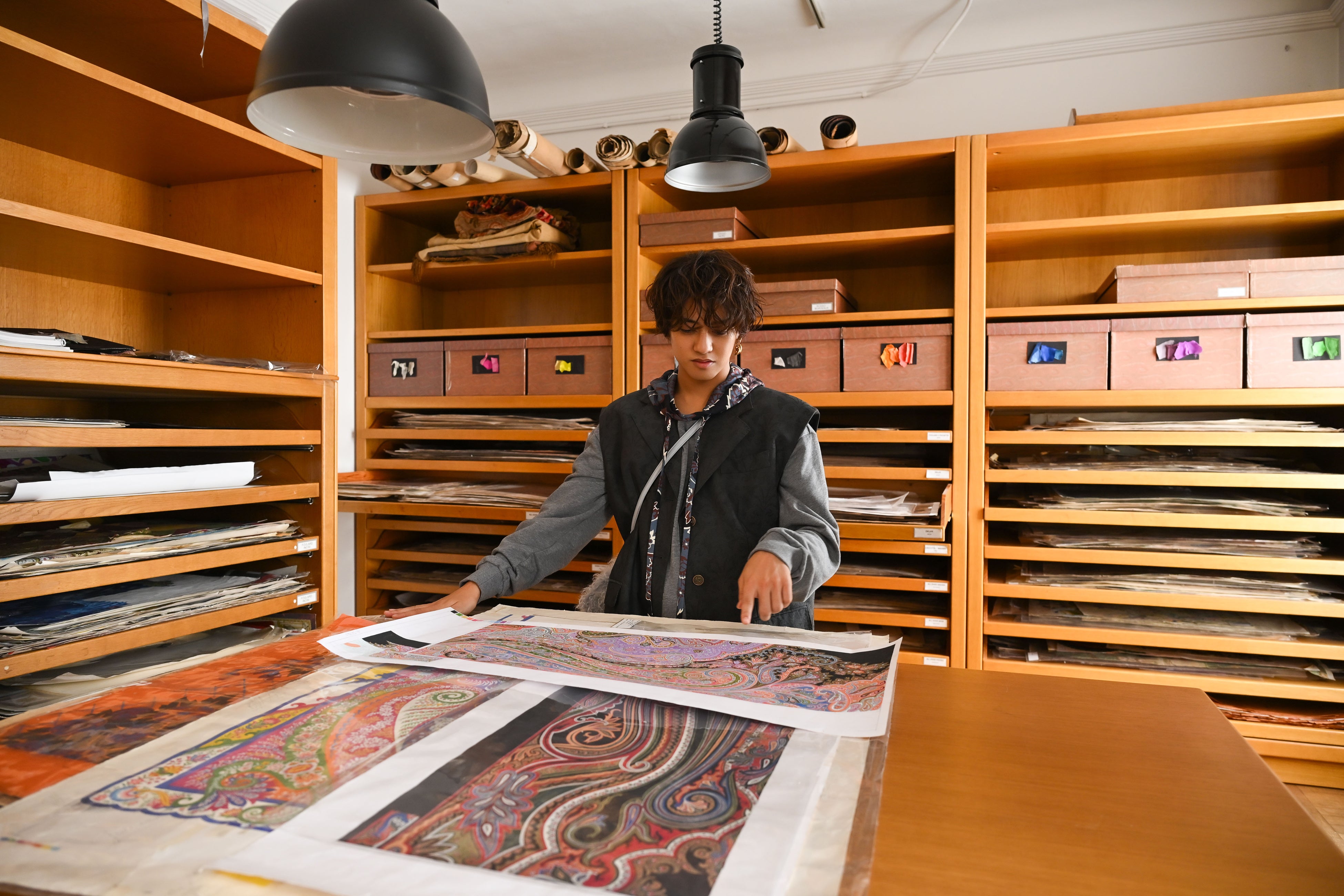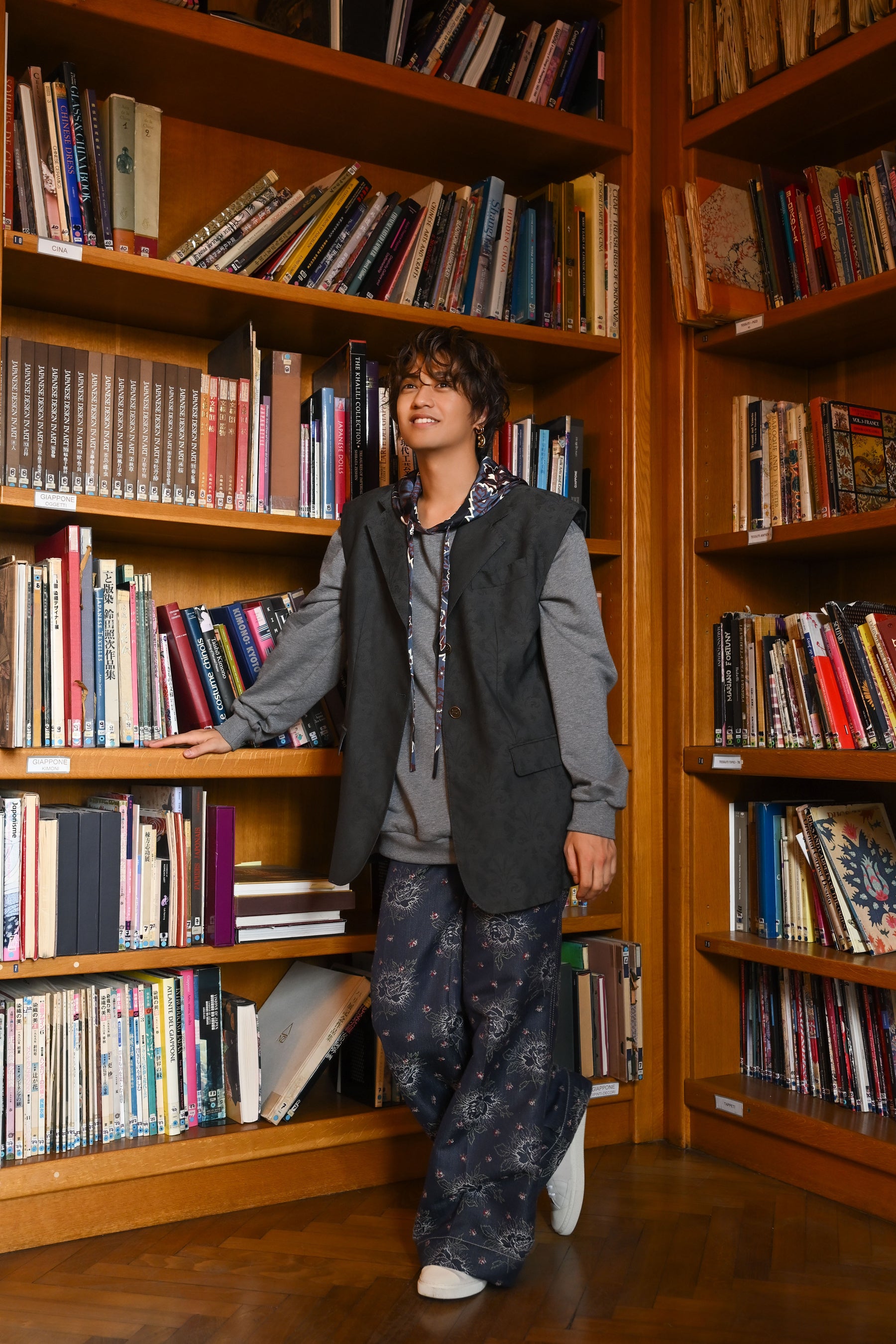 今回、髙橋海人は、エトロ2025春夏ウィメンズコレクションのファッションショーに参加するため、初めてミラノを訪れました。この旅では、創業当時から変わらぬエトロ本社にある、貴重なドローイング、テキスタイル、ファブリックのヘリテージが収められた、ブランドのクリエイティブの源泉ともいうべきライブラリーを訪れ、世界各国の歴史的なアンティークファブリックのスワッチが格納された本や、デザインやテキスタイルに関する蔵書、今でもなおハンドドローイングされているエトロペイズリーの原画などを通じて、ブランドに息づくヘリテージや伝統、職人のクラフツマンシップに触れる様子が収められています。 また、ミラノの街を散策しながらエトロのブティックも巡ります。