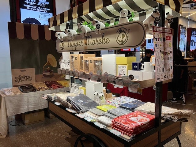 こちらのイベントにビクターの看板犬“ニッパー”のポップアップストア「ニッパーマルシェ(Nipper Marche)」を出店いたしました。ニッパーのグッズを多数取り揃えたこちらのマルシェでは、ロゴを使用したTシャツやトートバッグなどの定番商品や、絵本「NIPPER -His Master’s Voice-」の絵柄を使用したグッズなど、子供から大人まで楽しめるグッズが販売されました。