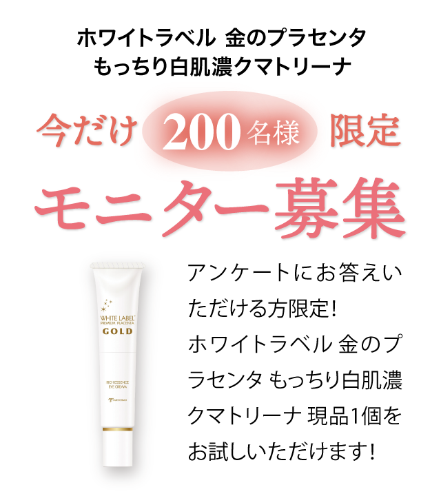 ホワイトラベル 金のプラセンタ もっちり白肌濃クマトリーナ「200名様限定モニター」募集!