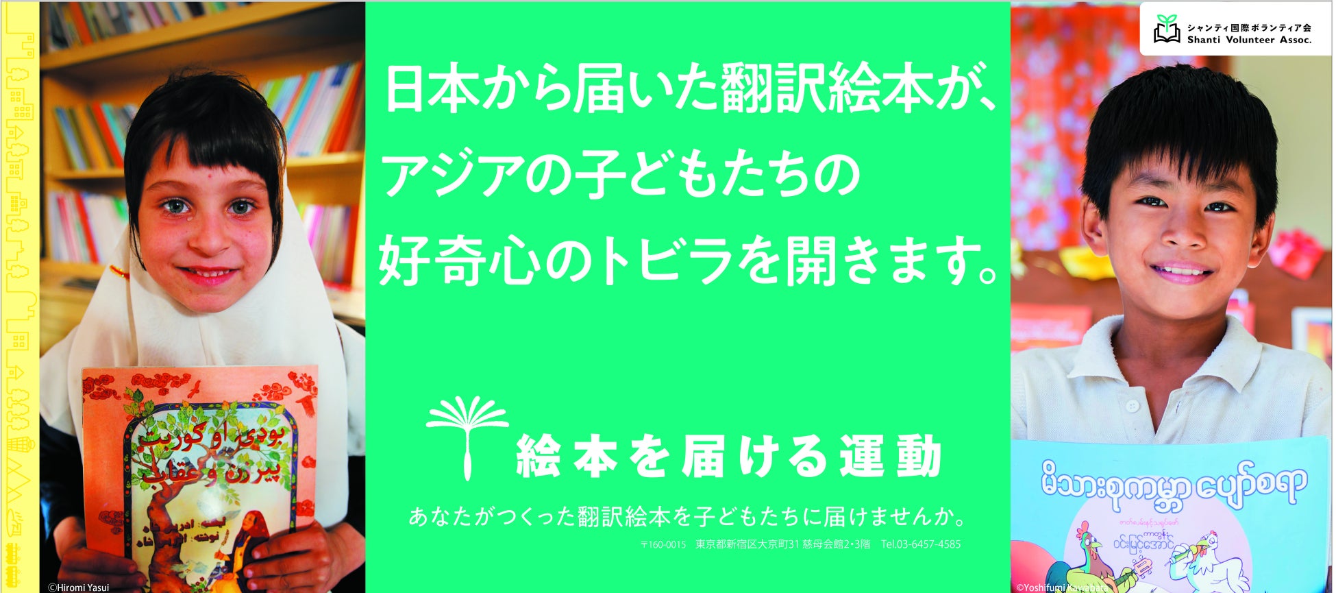 家庭でも・国内でもできる国際協力である「絵本を届ける運動」などを通じて、国内外における教育文化支援・緊急人道支援に取り組んできた日本生まれのNGOとして、これからも「共に生き、共に学ぶ」ことのできる平和(シャンティ)な社会を実現するために活動に取り組みます。